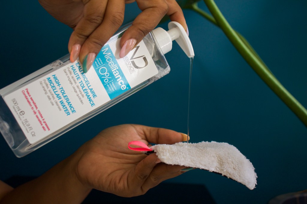 Cette eau micellaire est spécialement formulée pour les peaux sensibles, mixtes à grasses. Dès la première utilisation, j’ai été agréablement surprise.